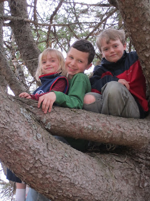 Our buddy Kyle came over to play and spend the night. Thankfully the weather cooperated and it didn't rain so I could send the craziness outside. I was trying to get some housework done when I was pulled out the door to supervise the ladder placement and the precarious efforts to conquer the tree.